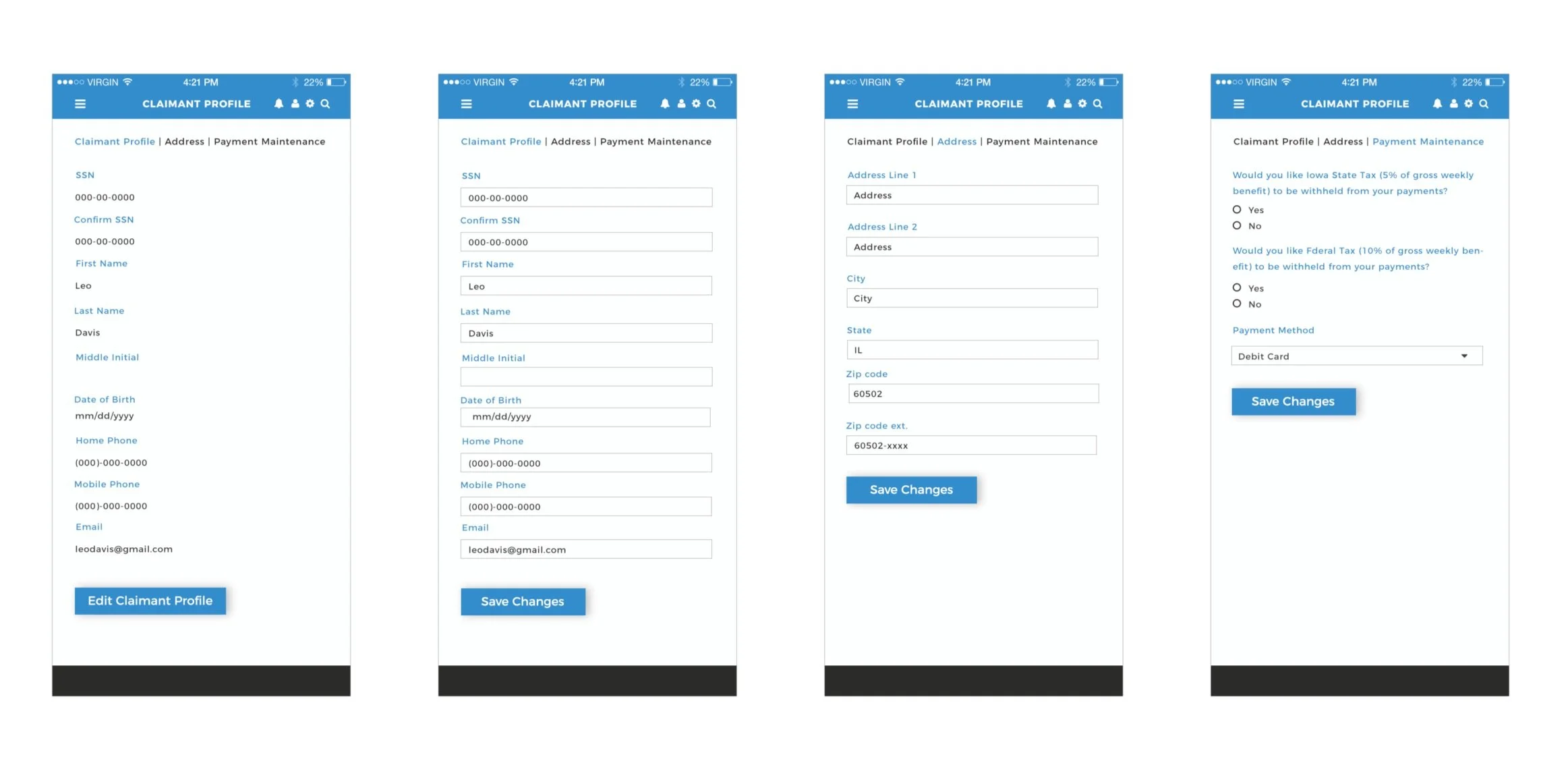 We had an existing web app for the unemployment insurance portal for the state agencies. I redesigned the core screens based on the information I acquired from the Business Analysts. I started with creating hi-fi wireframes that were similar to the prototypes. I used photoshop for wire-framing and created working prototypes using HTML5, CSS5, and Bootstrap.